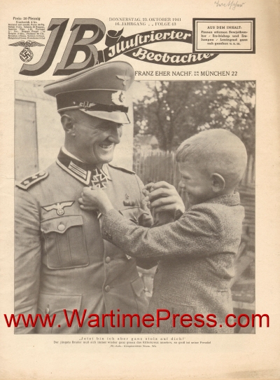 German soldier is proudly showing off his Knight Cross; war correspondent Wurm
