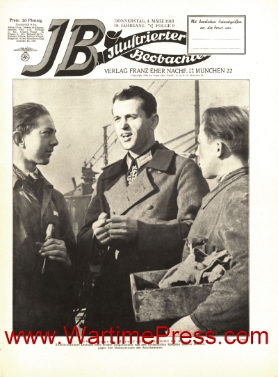 Ritterkreuztraeger Leutnant Merz explains to the young workers heroic struggles of German soldiers on the east front; photo by Theo Felten