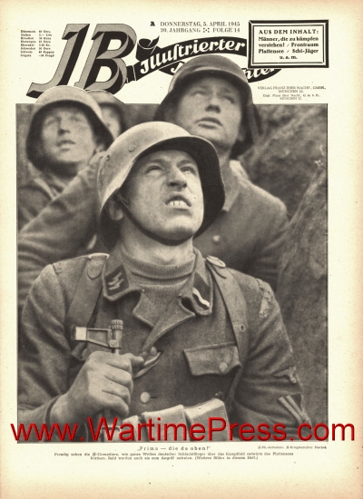 SS troops in Hungary watching German planes near lake Balaton; SS correspondent Buschel