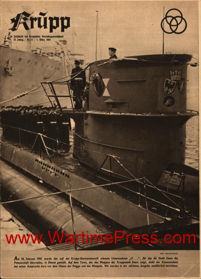 Captured submarine with the town of Essen insignia
